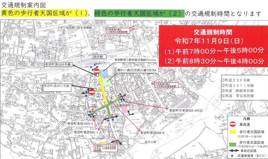 ふるさとの祭典市では飲食や展示、ステージなど多種多様な出展がありますので、大規模な交通規制を予定しております。