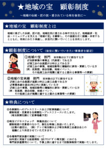 詳しい概要はコチラ ➡ 地域の宝顕彰制度(クリックでPDFがダウンロードできます)